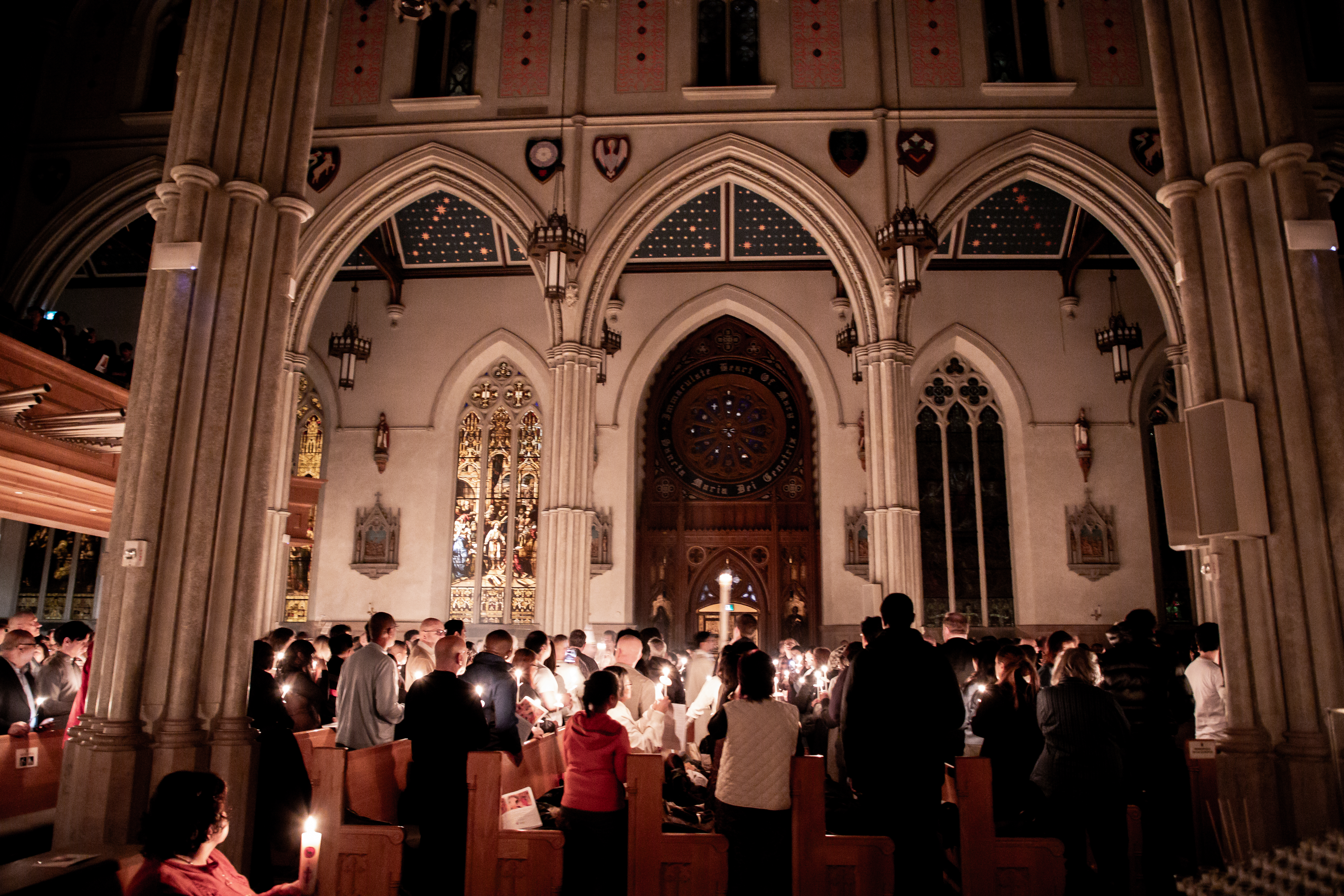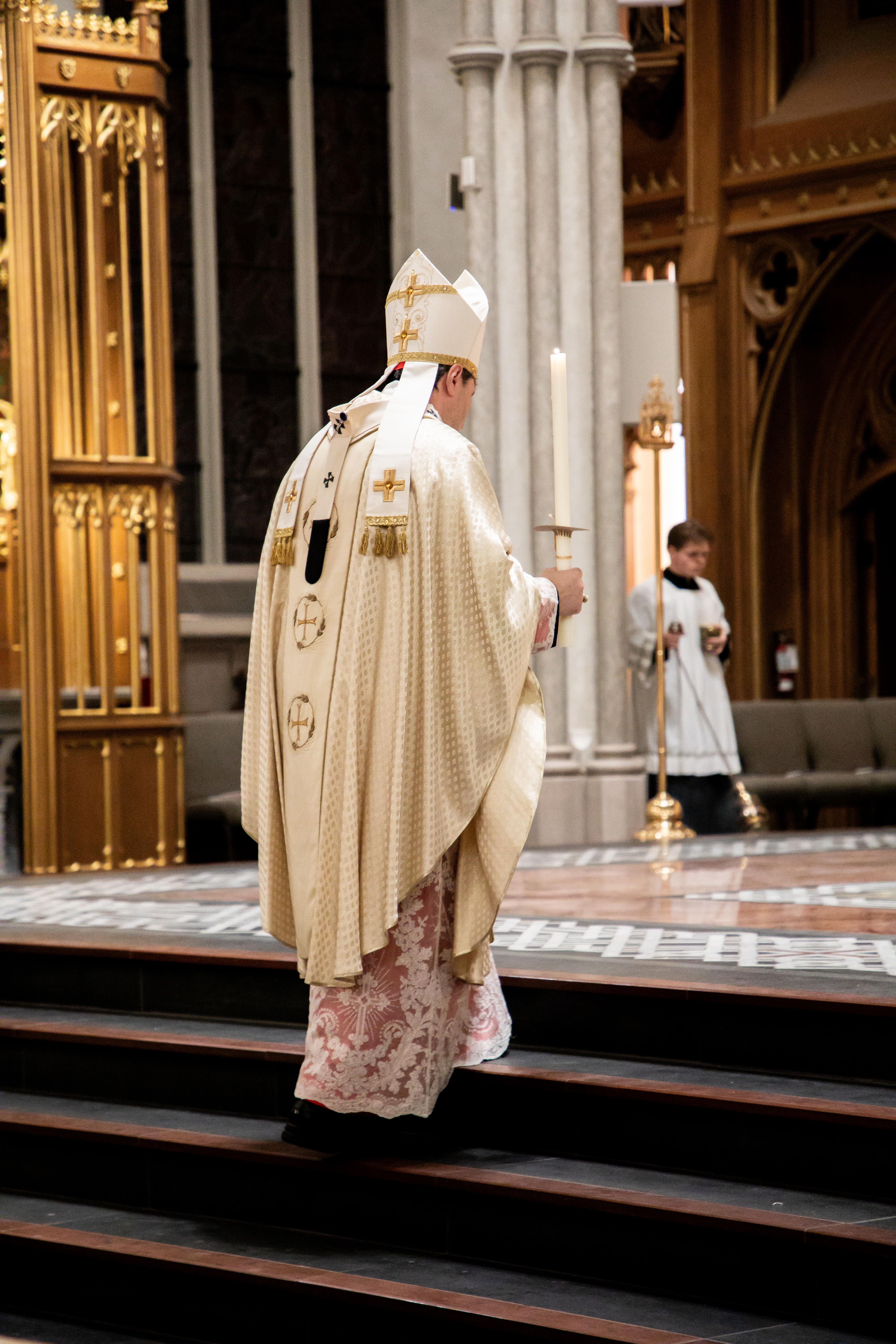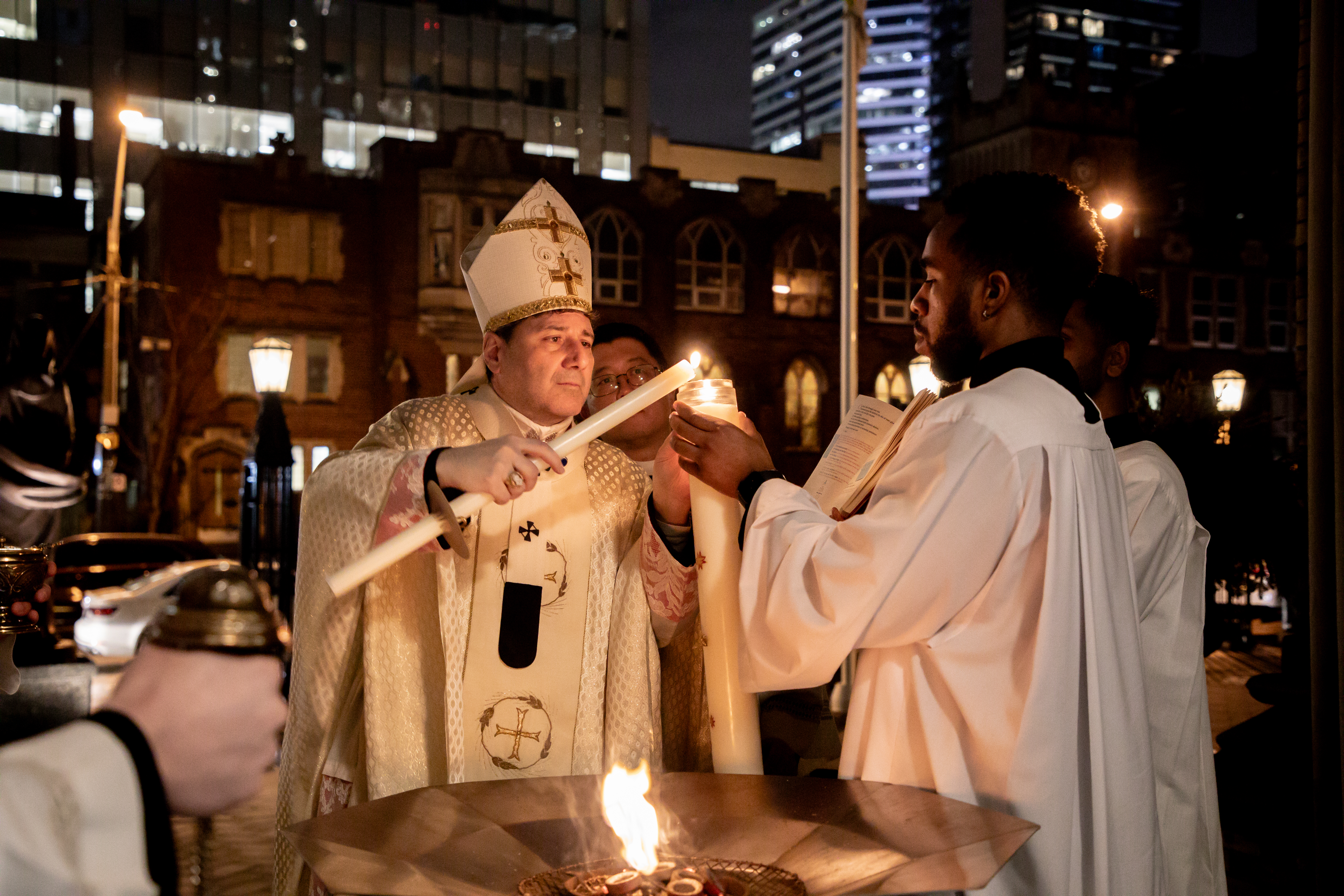 At St. Michael’s Cathedral Basilica, His Eminence Frank Cardinal Leo presided at the Easter Vigil at 9 p.m., celebrating the sacraments with the newly initiated from the cathedral community.
